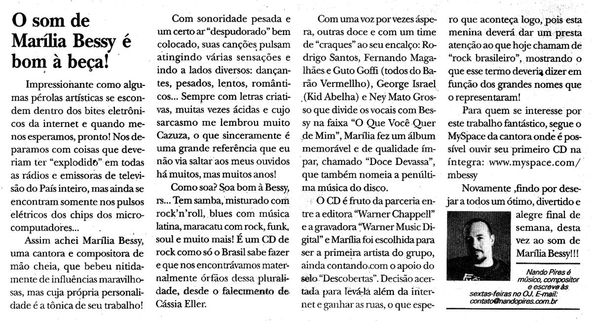 Novamente findo por desejar a todos um ótimo, divertido e alegre final de semana, desta vez ao som de Marília Bessy!!!